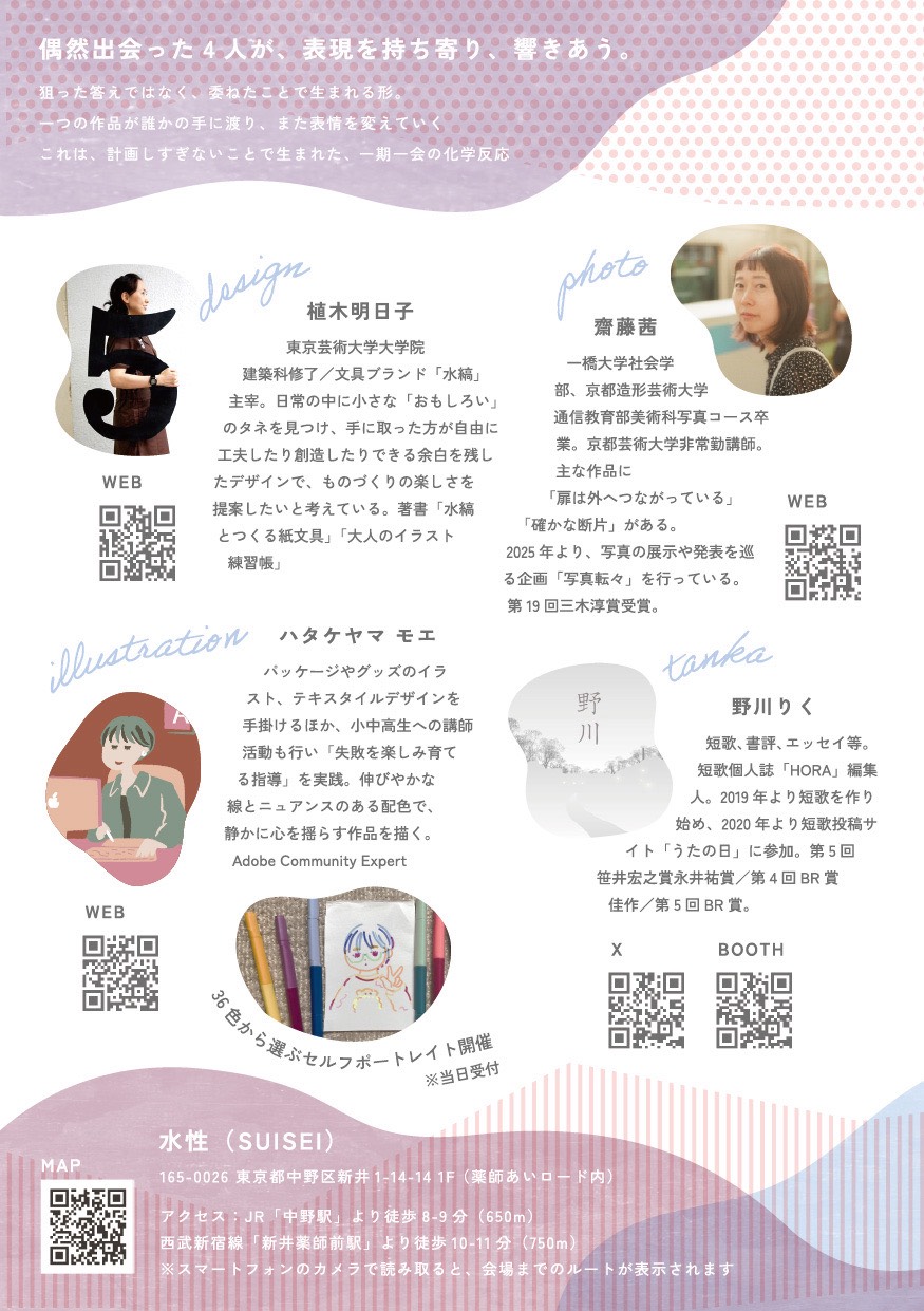 5〜10分ほどの心地よい時間の中で、自分の良さをふと再発見できるような、そんな一枚をお届けします。展示を楽しみながら、どうぞお気軽に体験してみてください。